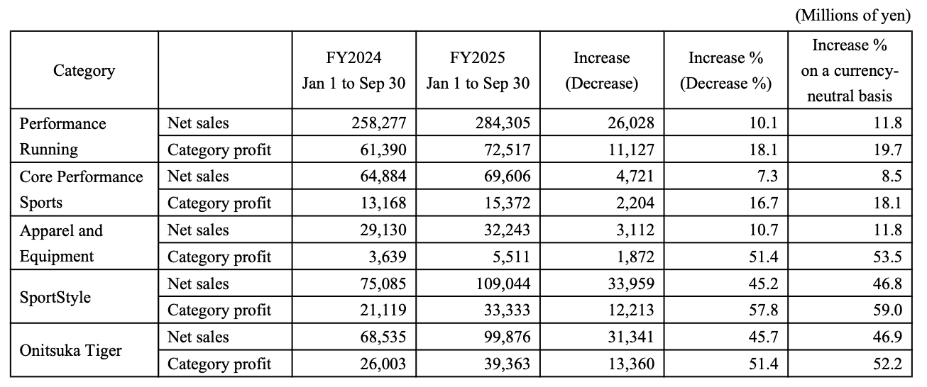In the first nine months of 2025, ASICS Group’s operating profit surged 39.4% year-on-year to JPY 127.6 billion (approx. USD 829 million), while net profit attributable to owners of the parent increased 32.9% to JPY 86.3 billion (approx. USD 561 million), both reaching record highs.