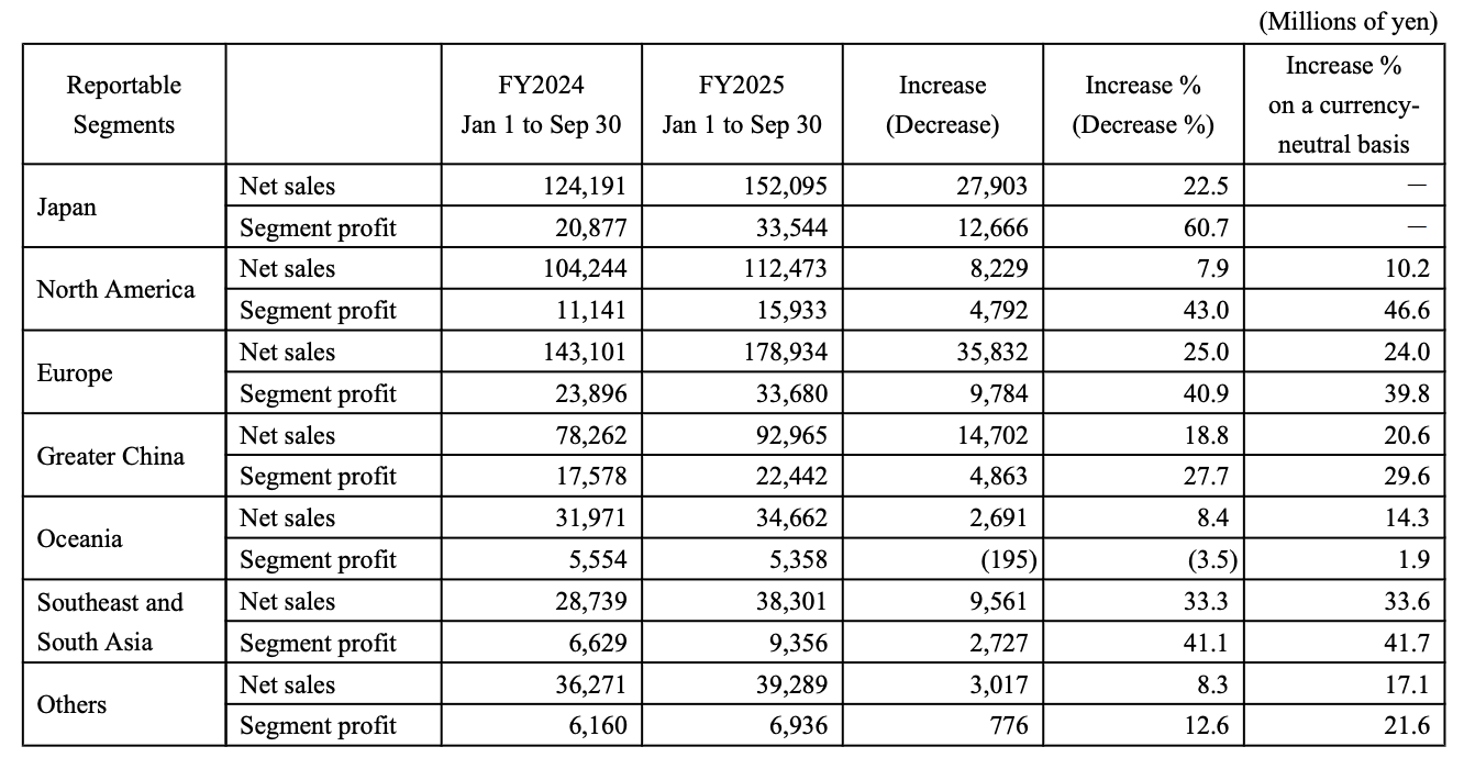 Japan: Operating profit rose 60.7% year-on-year to JPY 33.5 billion (approx. USD 218 million)