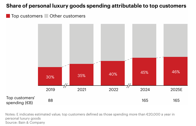Experience-based personal luxury (including luxury cars, fine art, private jets and yachts, and fine wines and spirits) made up 52%, marking a 5% decline.