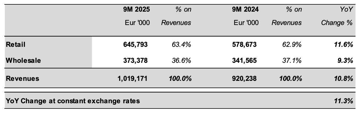 The multi-brand channel continued to perform strongly, reinforcing its long-recognized strategic importance. Sales results for the Spring/Summer 2025 season were also very attractive for wholesale partners.