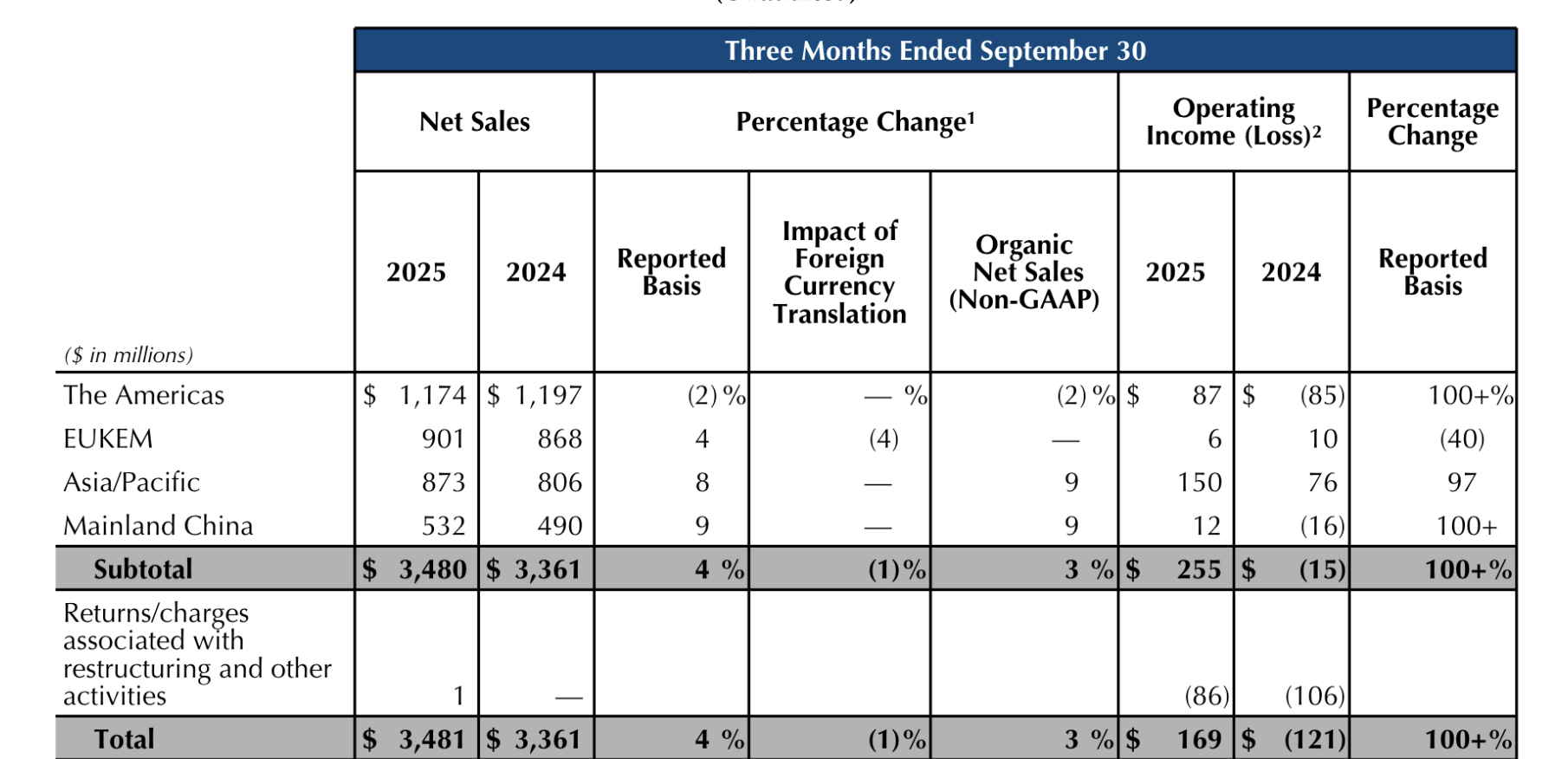 Growth in the Chinese Mainland was supported by a dual engine of innovative and existing products, targeted expansion in consumer reach, and focused marketing campaigns that fueled online growth. The increase in sales, along with the benefits from the Profit Recovery and Growth Plan, contributed to higher operating income in the China market.