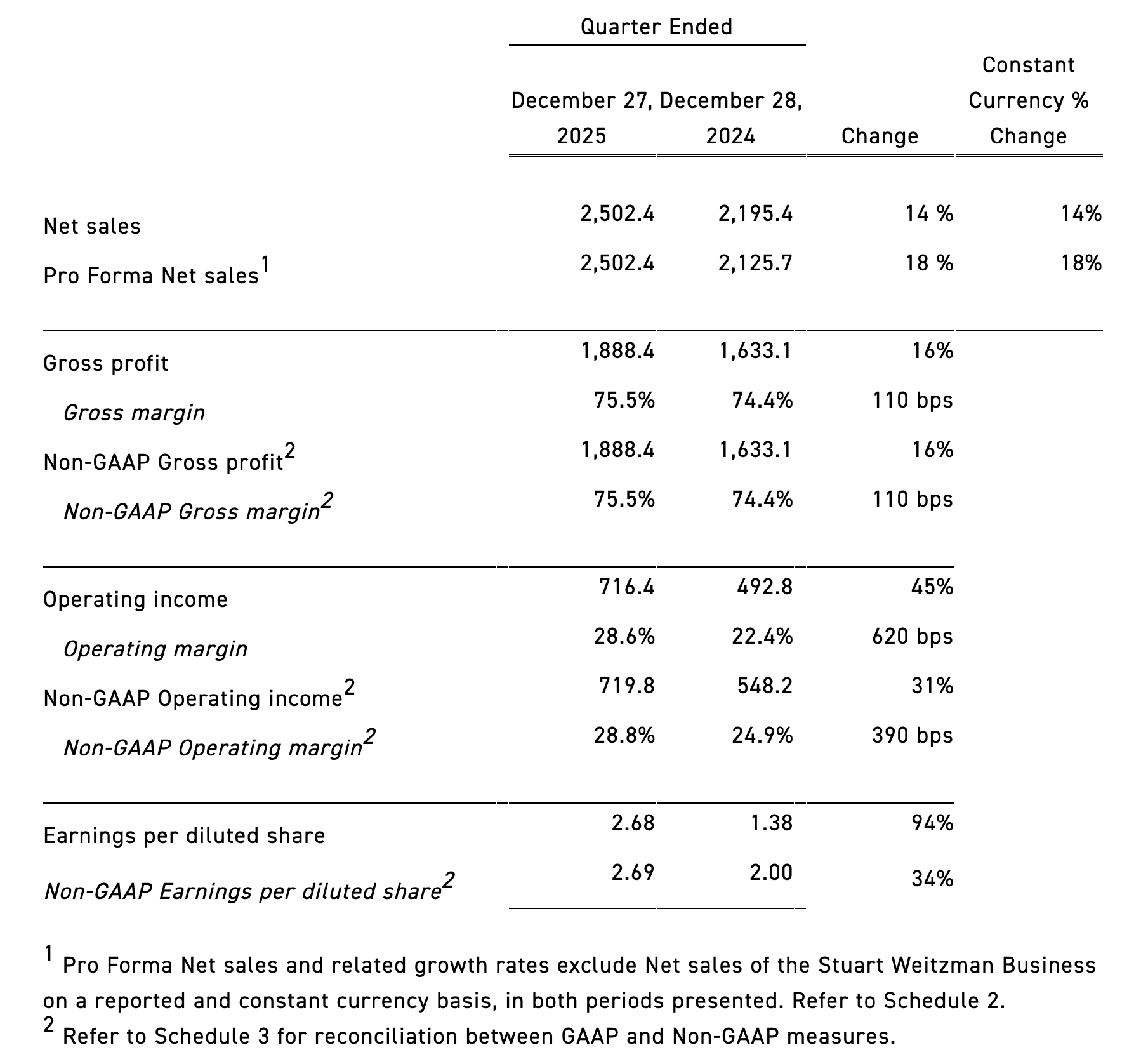 “This holiday season, our talented teams brought creativity, craftsmanship, and value to consumers around the world, building new and lasting connections that fuel enduring brand desire and demand. As we move forward, we do so with momentum and confidence. By harnessing our proven strategies and structural advantages, we are raising our outlook for the fiscal year, reinforcing our commitment to driving durable growth and long-term value creation.”