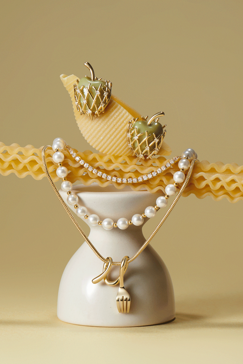 The inspiration continues to evolve. In March 2026, HEFANG introduced a new season of the collection, reimagining tableware, fusilli, artisan bread and fruit as playful yet refined jewelry pieces. Elements of the dining table are translated into wearable forms, appearing at the wrist, ear and neckline, bringing imagination into everyday rituals.