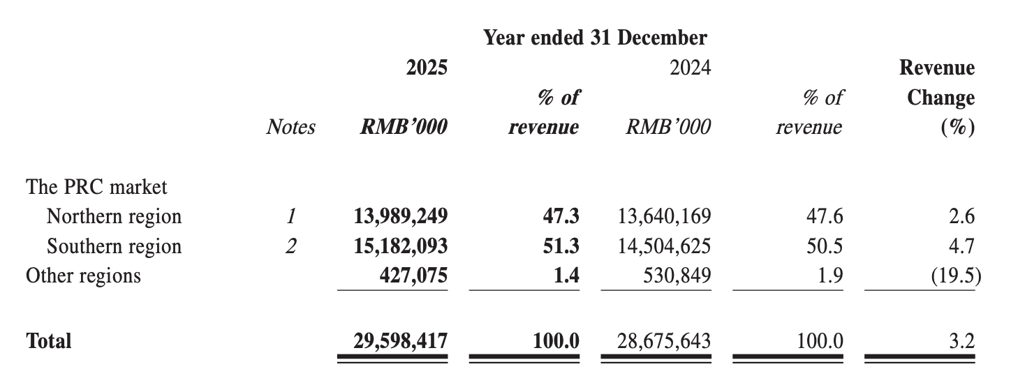 - Chinese market: Revenue in Northern China increased by 2.6% year-on-year to RMB 13.989 billion (approximately USD 1.94 billion), while revenue in Southern China rose by 4.7% year-on-year to RMB 15.182 billion (approximately USD 2.11 billion).